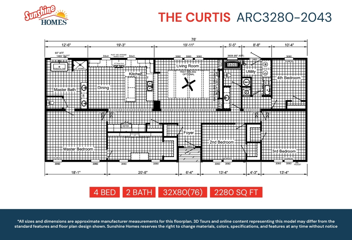 All sizes and dimensions are nominal or based on approximate manufacturer measurements. 3D Tours and photos may include retailer and/or factory installed options. Sunshine Homes reserves the right to make changes due to any changes in material, color, specifications, and features at any time without notice or obligation.