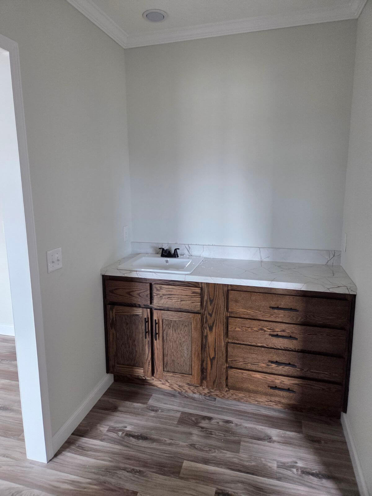 Bathroom Cabinets: Real Wood Cabinets with soft close drawers and doors